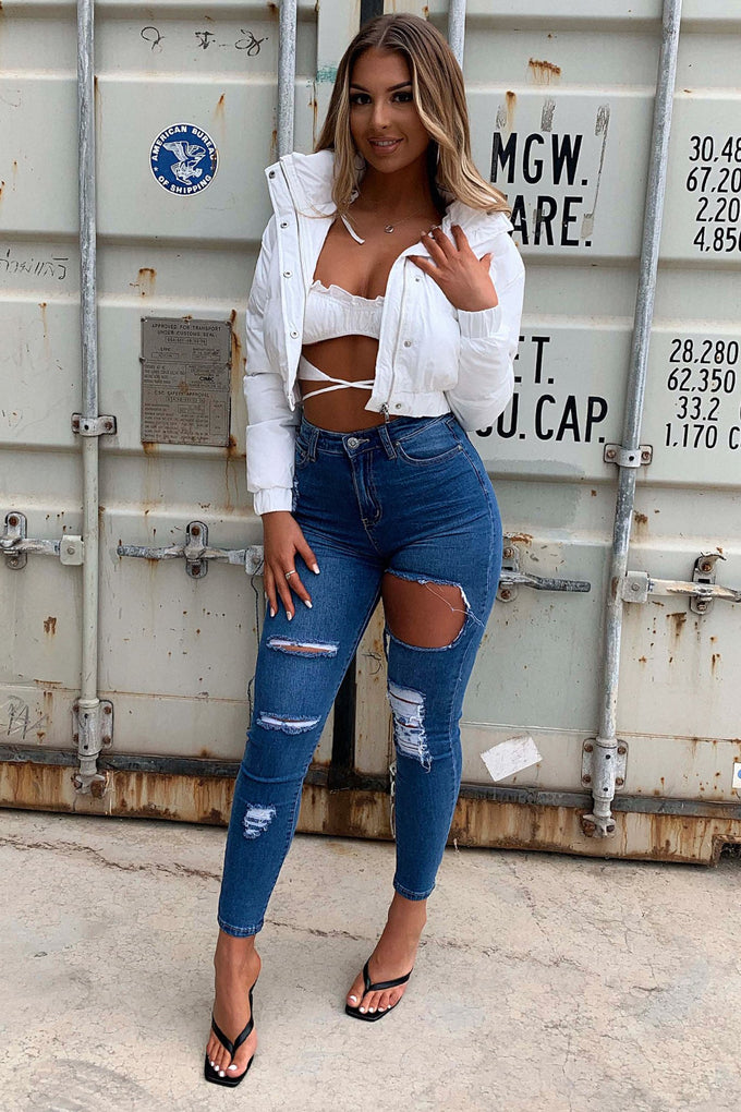 Layer up this winter in the cosiest jacket ever! The Manchester Puffer in White features a cropped fit with an elasticated waistband, a high neck style with a zip and snap button closure, cuffed sleeves and a thick puffy fabrication all over. Take this babe on a winter night out paired with white high waisted jeans and a cute crop.