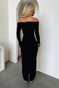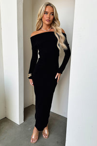 Aaliyah Off Shoulder Knit Maxi Dress - Black