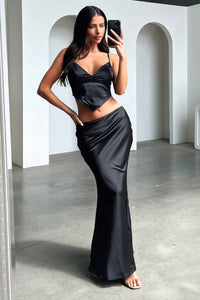 Ready to make a statement? Slip into the Adira Maxi Skirt and you'll be turning heads in no time. With a double lining, invisible zipper, and flowy fit, feel beautiful, comfortable, and confident. Plus, the matching crop top will let you slay your next event!