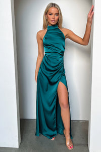 Arabelle High Neck Satin Maxi Dress - Emerald