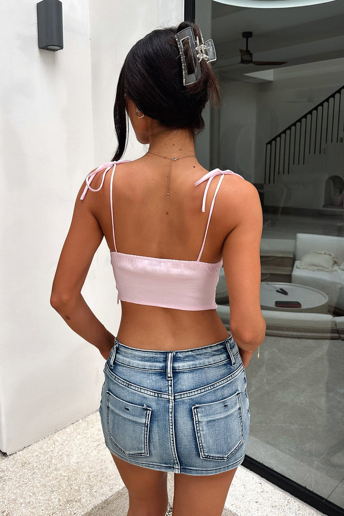 Get ready to slay this spring with the Aviana Crop! This trendy top features an elasticated waist for a comfortable fit, delicate lace trimming along the bust for a feminine touch, and tie up shoulder straps for a unique look. With an invisible side zipper, this crop is perfect for pairing with your favourite jeans for a cute and playful vibe!