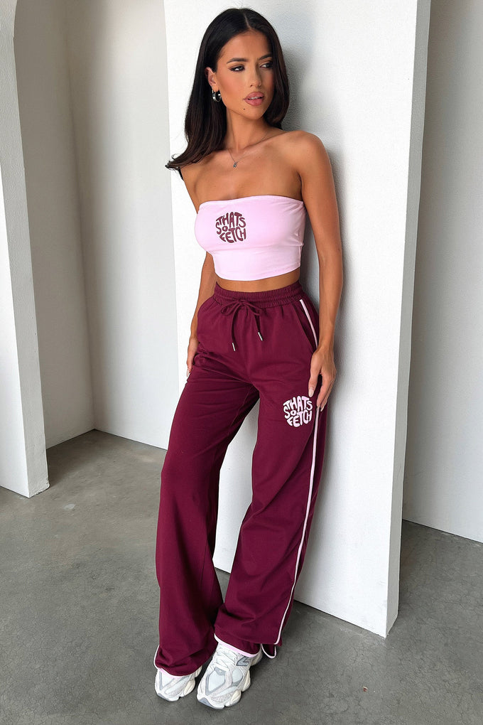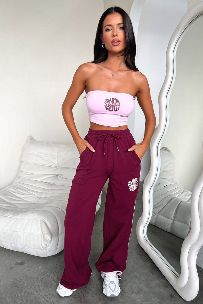 Introducing our latest obsession, the Beckham Wide Leg Pants! Featuring a relaxed fit, exclusive ThatsSoFetch logo, and soft material, these pants are perfect for lounging in style. With an elasticated waistband, they offer ultimate comfort. Pair them with the matching baby tee for a complete look!