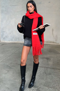 Get cozy this winter with the Cinzia Scarf. Made from soft and fluffy wool, this scarf features trendy tassel detailing and an embroidered patch that reads "THATSSOFETCH". Keep stylish and warm this season!
