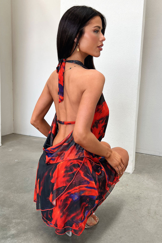 Cleo Plunge Cowl Neck Mini Dress - Black/Red