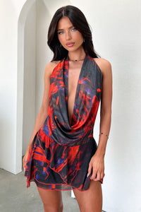 Cleo Plunge Cowl Neck Mini Dress - Black/Red