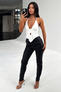 Introducing the Damika Pants - the ultimate date night look! With a sleek high waisted fit, silver back zipper, and stretchy material, these pants make it a breeze to look stylish with minimal effort. Add a fiery bodysuit and some heels to slay the night away!