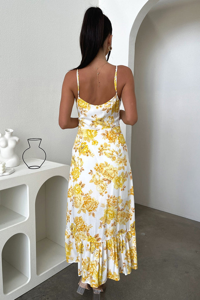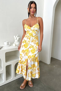 Looking for the perfect dress this summer? The Dilara Maxi Dress is the perfect choice! Showcasing a sweetheart neckline, buttons down the front, double lined bust, adjustable straps, an invisible side zipper, a flowy fit and a cheeky front slit. Style her with sandals and a cute mini bag!