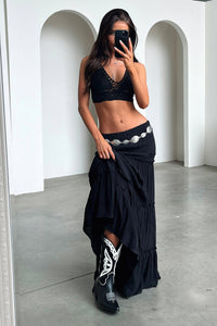 Get ready to elevate your summer wardrobe with the Dunne Maxi Skirt in White. Featuring a flowy fit and double lining, this skirt is ideal for any warm-weather occasion. The elasticized waistband adds comfort and versatility, perfect for styling with a cute crop and sandals for a picnic date!
