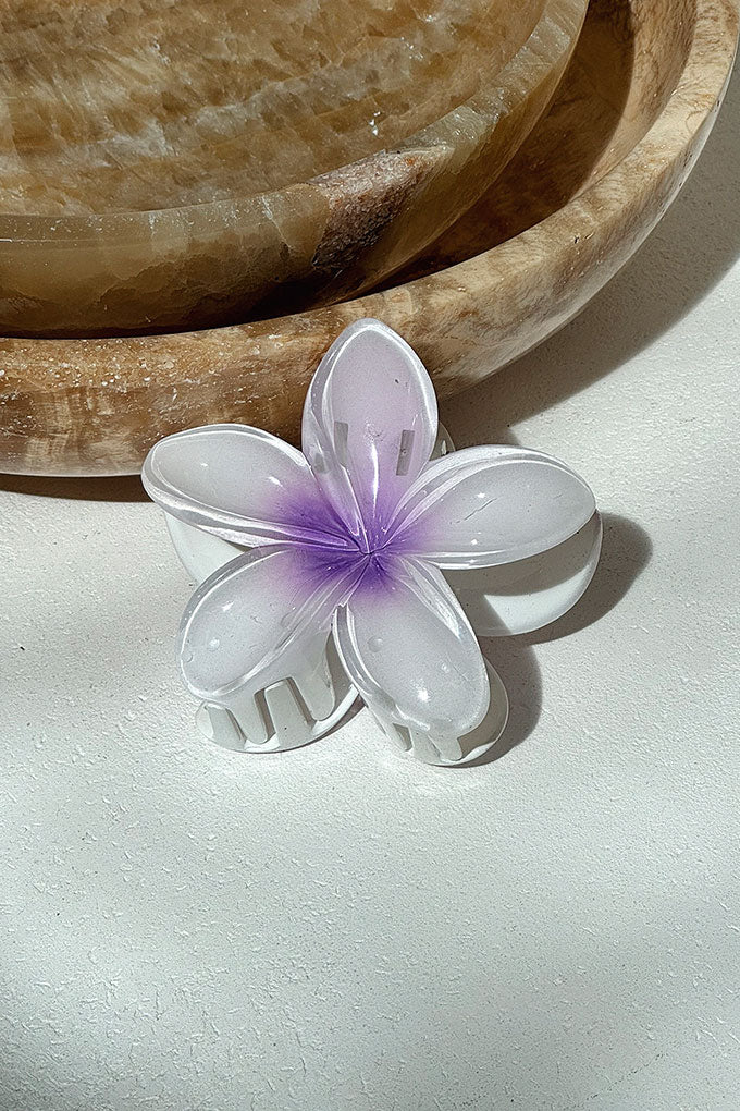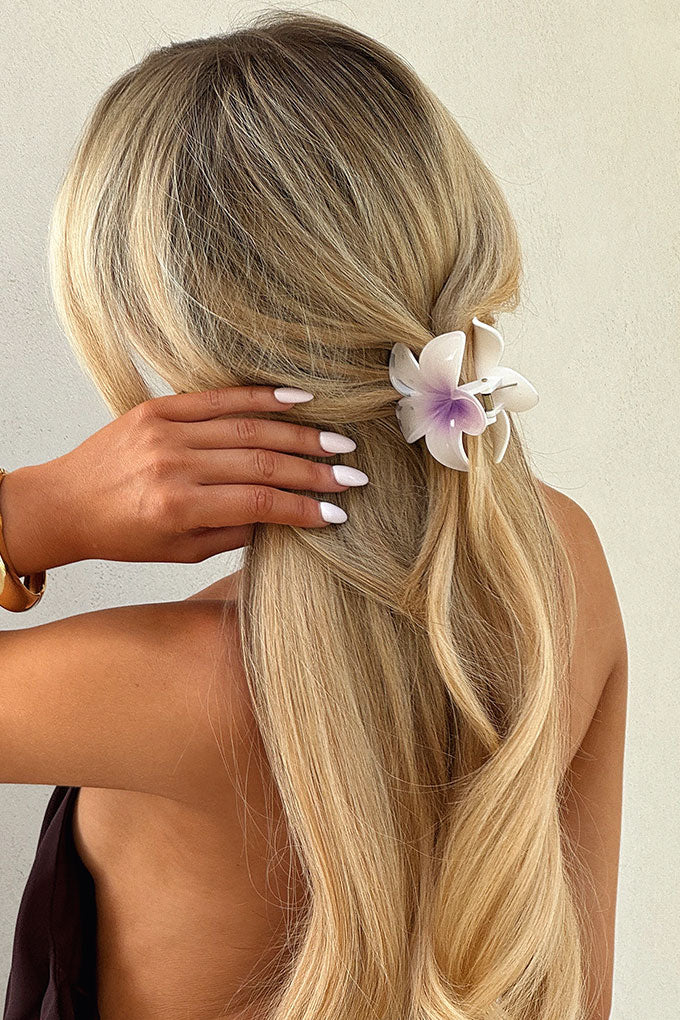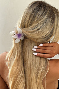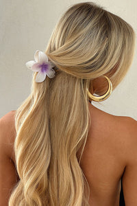 Add a pop of playful charm to your summer look with the Frangi Claw Clip! Crafted from durable plastic and shaped like a delicate flower, it’s the perfect accessory to secure your hair while adding a fun, tropical vibe. Pair it with a cute crop top and denim skirt for your next holiday adventure or sunny day out!