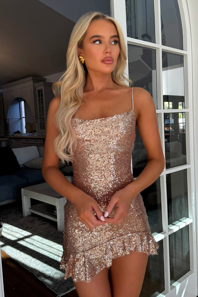 Be the belle of the ball in the Hannan Dress! Featuring a cowl neckline, adjustable straps, criss cross back design and all over sequins, you'll be the envy of every room. Get ready to make jaws drop with this one - just add some simple heels and elegant jewellery for your next event!