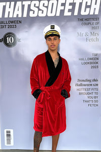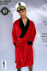Make a statement this Halloween with our Hef Robe! Whether you're a party of two or solo, you can embody the legendary Hugh Hefner with this luxuriously soft and velvety robe. It features two side pockets and a tie-up belt, plus a TSF embroidered logo for extra authenticity. Accessorise with the Captain hat for the ultimate Hefner look!