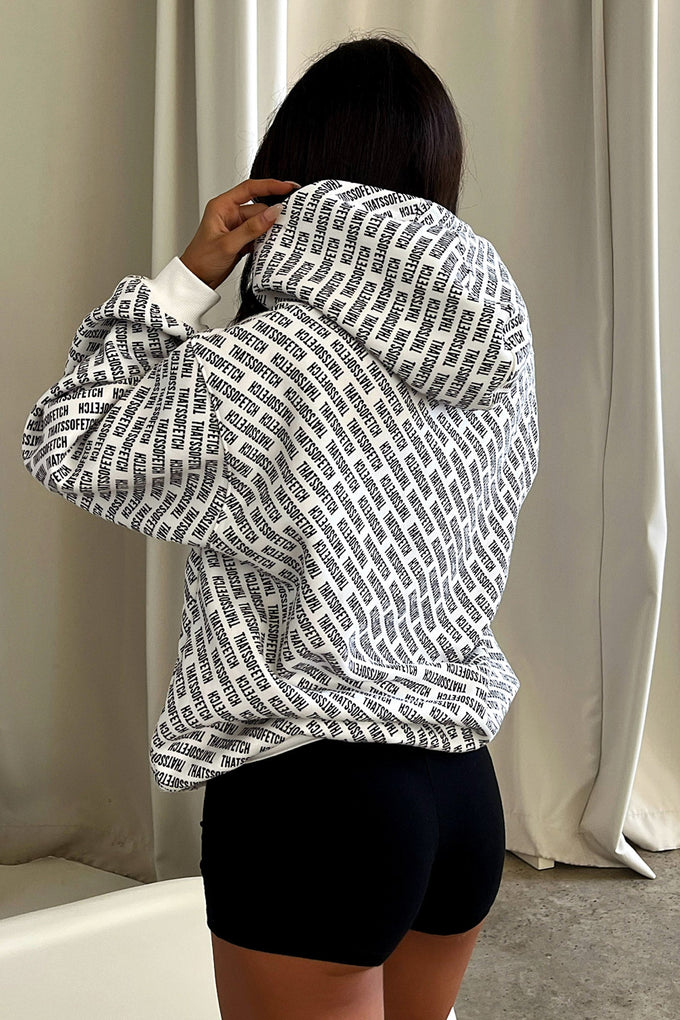 Rock the ultimate street style with the Juster Hoodie! The soft fleecy inside keeps you cozy while the exclusive ThatsSoFetch logo pattern adds flair. With an oversized fit and front pocket, this hoodie is perfect for any occasion. For a killer vibe, pair her with the matching Juster Shorts!
