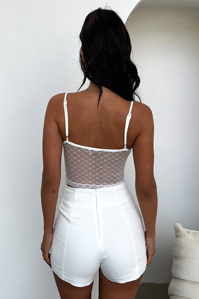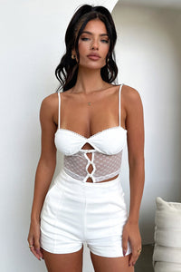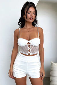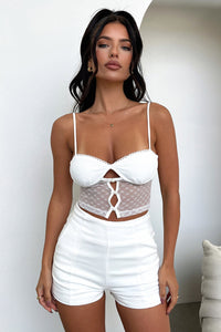Your search for the cutest crop is over with the Kacey Crop! Made from mesh material and featuring double lined busts, button detailing down the middle and adjustable spaghetti straps. Guaranteed to be your new fave top - just pair her with your trusty jeans and some cute heels and you've got the perfect date night 'fit. ;)