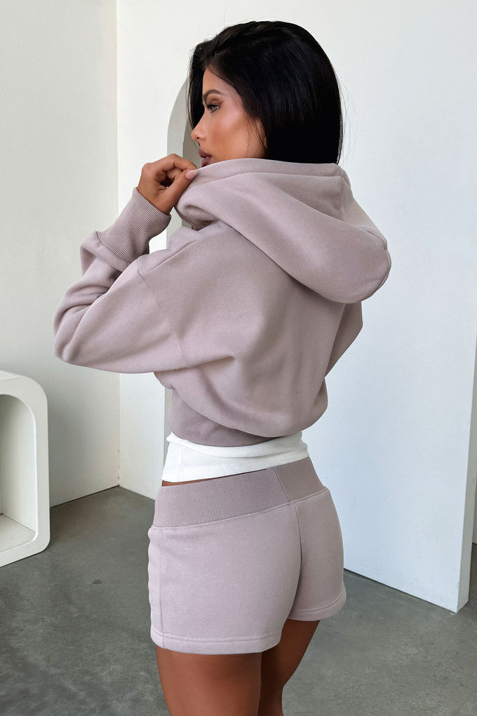 Stay comfy and stylish in the Kaztek Cropped Jacket. Its soft material and long sleeves make it perfect for lounging, while the embroidered TSF logo and silver zip add playful details. With a hood and cropped fit, it pairs perfectly with the Kaztek low rise sweatpants and ugg boots.
