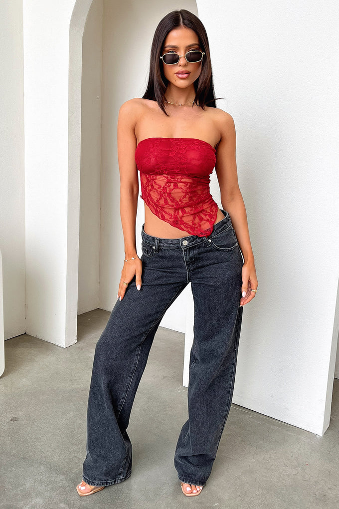 Add a playful edge to your look with our Maddison Top. The asymmetrical design and delicate lace material are sure to turn heads. Mesh lining on the bust provides extra support and ruching on the side adds a touch of sass. Perfectly paired with jeans and gold jewelry for a chic and stylish outfit!
