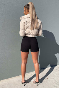 Layer up this winter in the cosiest jacket ever! The Manchester Puffer in Beige features a cropped fit with an elasticated waistband, a high neck style with a zip and snap button closure, cuffed sleeves and a thick puffy fabrication all over. Take this babe on a winter night out paired with white high waisted jeans, a cute crop and some boots.