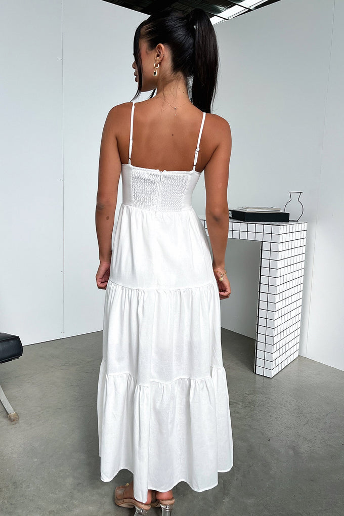 Feel beautiful and confident in the Mirana Dress! Crafted with adjustable straps for a perfect fit, an elegantly tiered flowy bottom, and captivating details across the bust. Be the belle of the ball when you pair this beauty with statement heels and gold jewellery for a timeless look!