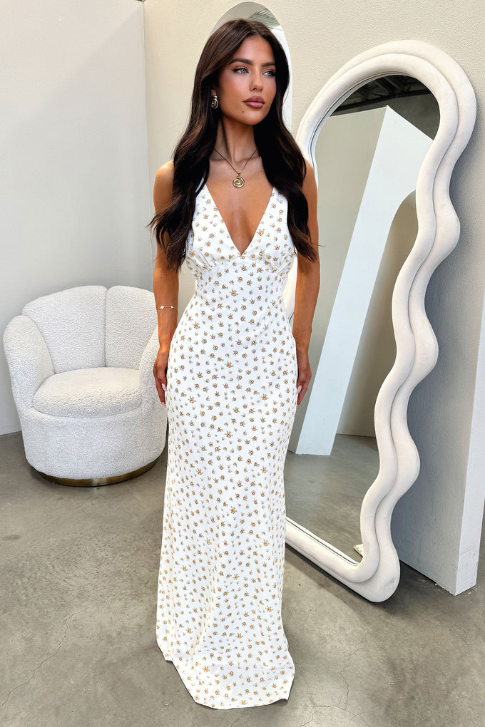 Introduce a touch of summer fun to your wardrobe with the Naf V-Neck Maxi Dress! This flowy and lightweight dress features a flattering v neckline and an invisible side zip for easy wear. The back waist tie adds a cute and unique detail, perfect for pairing with sandals and a cute bag!