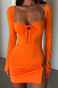 Sent from the heaven above, The Noor Mini Dress is the prettiest little number. She features long bell sleeves, a cut out detail in between the bust, under bust lining, double lining and a cut out detail down the left side with tie up strings. Style her with White Strappy Heels and gold jewellery.