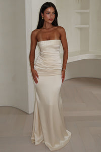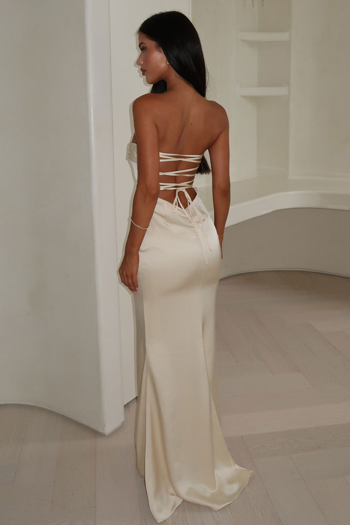 Ophelia Strapless Embellished Satin Maxi Dress - Champagne
