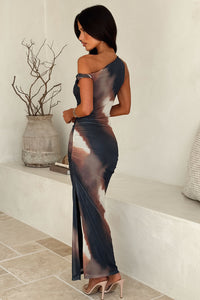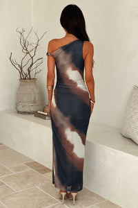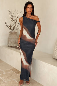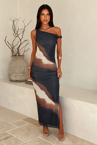 Rebekah Mesh Maxi Dress - Charcoal/Brown