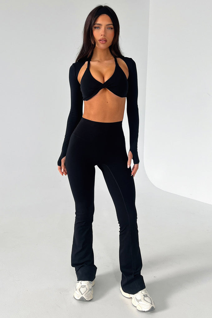 Stay cozy and stylish in our Ryder Bolero. Made with soft, stretchy material, this bolero is perfect for those slightly chilly days. The long sleeves and thumb holes add extra warmth, while the TSF logo on the back adds a touch of flair. Complete the look by pairing it with one of our matching crops and the Reddick leggings!