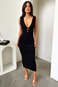 Get ready to turn heads in the Sabina Midi Dress! This bodycon dress in stretchy ribbed material features a deep v neckline and cut out back detailing, perfect for your next girls night out. Pair it with some heels and a cute bag and get ready to dance the night away!