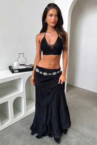 Step up your summer style game with our Valetta Crop! This playful top features back and neck tie up strings, giving you the perfect fit every time. The halter neckline and crochet material add a touch of bohemian charm. Pair her with denim shorts for an effortless and chic look this summer season!