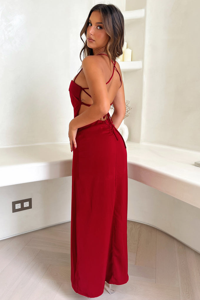 Elevate your style and confidence with our Willow Maxi Dress! Featuring a fold over straight neckline, invisible side zipper, and criss cross tie up back, this dress offers a comfortable and flattering fit. Made with double lined material and a flowy skirt, it's perfect for any special occasion. Pair with simple heels for a stunning look that will turn heads!