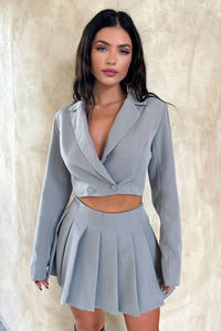 She means business! The Windsor Mini is a babe featuring a wrap around pleated design with tie up strings. Style her with the matching Blazer, stiletto boots and a little handbag.