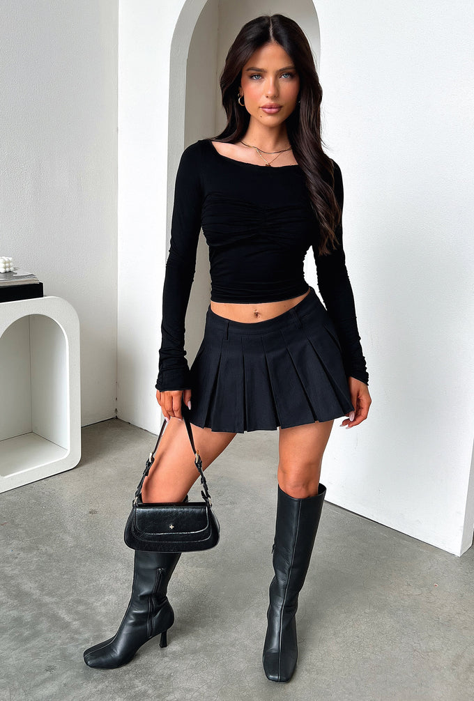 Unleash your wild side with the Wren Skirt! This cutesy skirt features an invisible side zipper and pleated design for added style. Keep it sassy and secure with built-in safety shorts, and rock the look with belt loops along the front and back waistline. Perfect for a night out with a cute crop and boots!