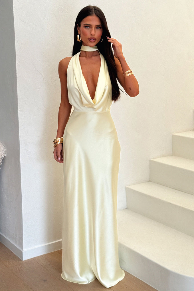 Zealand Plunge Halter Satin Maxi Dress - Yellow