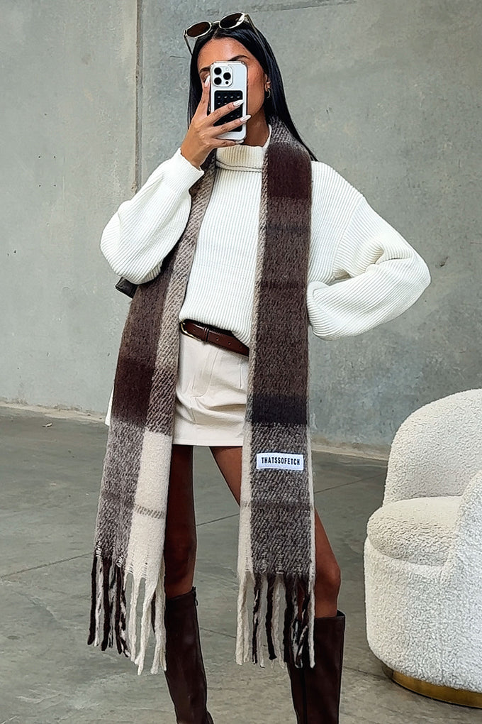Zorino Scarf - Cream/Brown Plaid